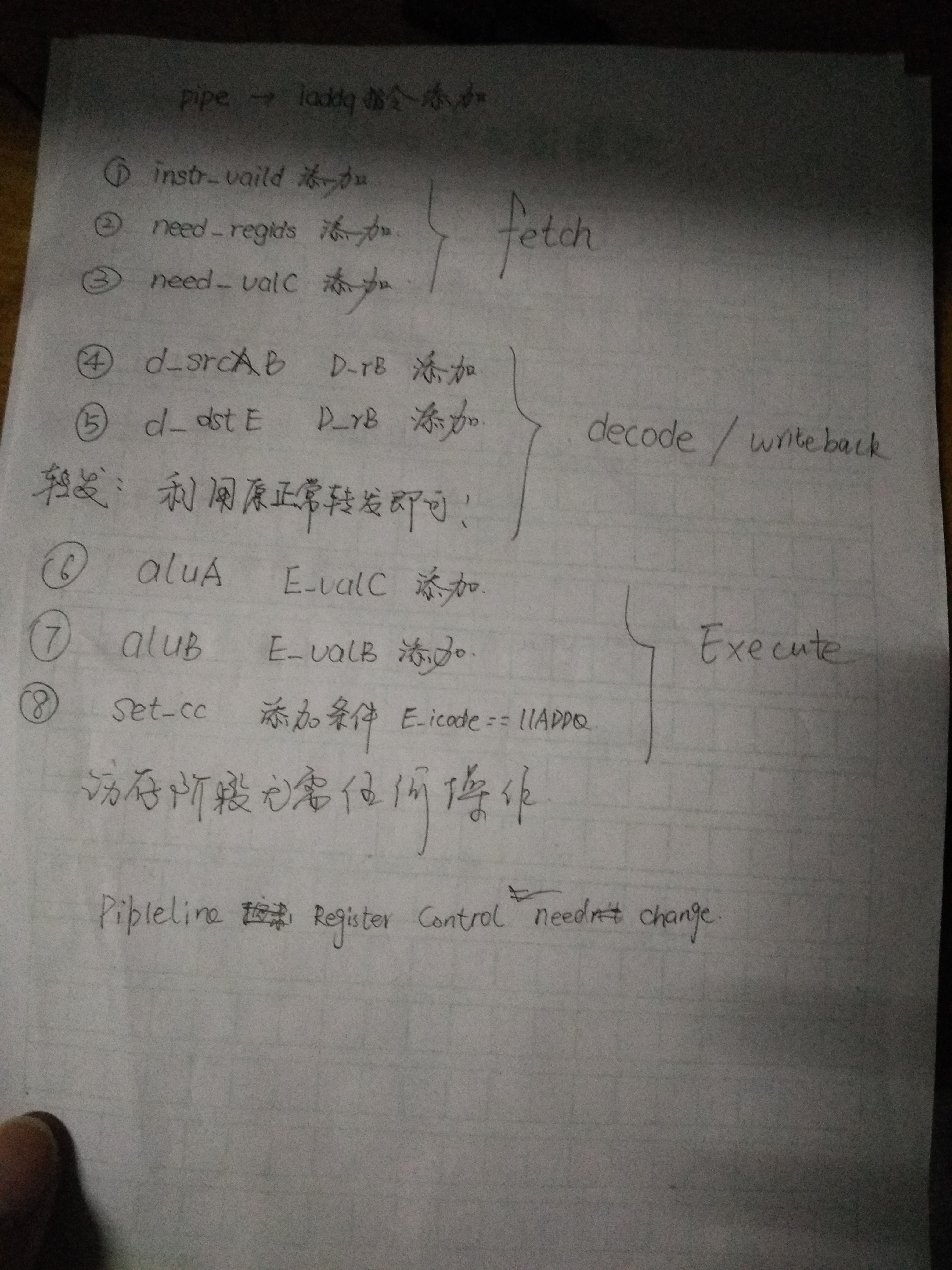 ##### Pipeline Register D ########################################## wordsig D_icode 'if_id_curr->icode'   # Instruction code wordsig D_rA 'if_id_curr->ra'	     # rA field from instruction wordsig D_rB 'if_id_curr->rb'	     # rB field from instruction wordsig D_valP 'if_id_curr->valp'     # Incremented PC