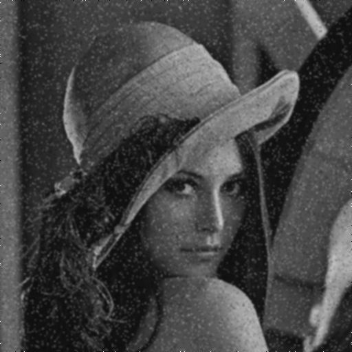 - 中值滤波,对图像每个像素进行模板内像素的中位数求值并更新中心像素。