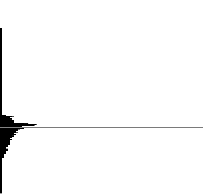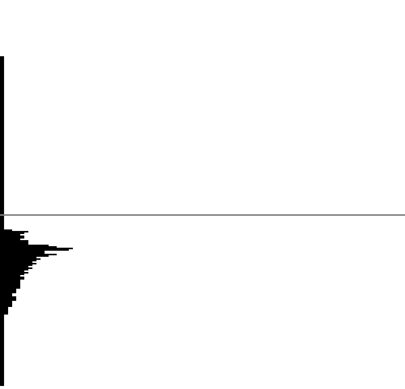 相应的直方图,灰色线条为所选的阈值,图像从下向上灰度增加