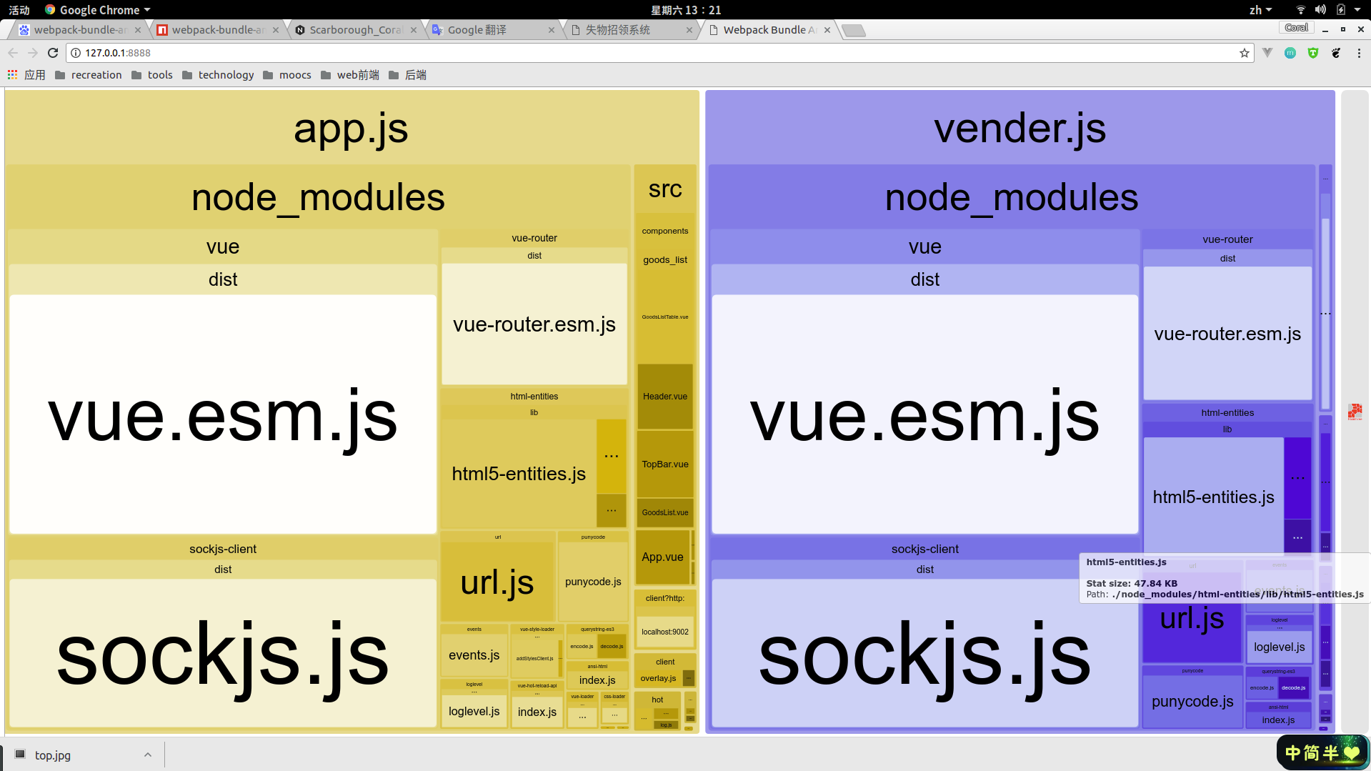 今天意外地发现了一个神奇的工具,是一个将webpack打包后的文件关系可视化的工具,叫webpack-bundle-analyzer,这里是npm的工具链接,其效果如下。